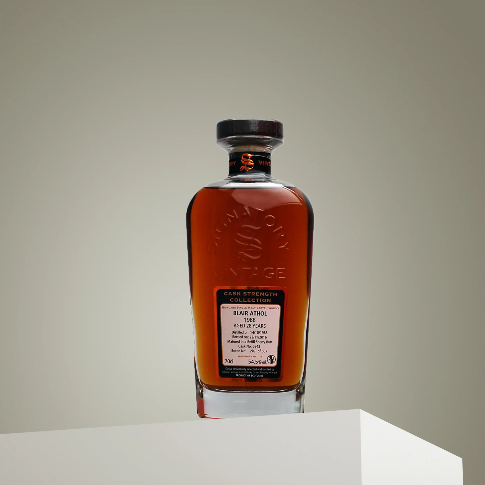 Blair Athol 1988 25 Year Old Signatory là một chai whisky single malt Scotch hiếm có, được chưng cất năm 1988 tại nhà máy Blair Athol và ủ trong 25 năm bởi Signatory Vintage.